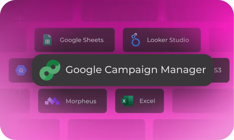 The Google Campaign Manager connector simplifies campaign performance tracking by automatically importing your ad data into tools like Google Sheets, Looker Studio, and Power BI. Analyze key metrics like impressions, clicks, conversions, and ROAS to optimize your advertising strategies and drive measurable growth.