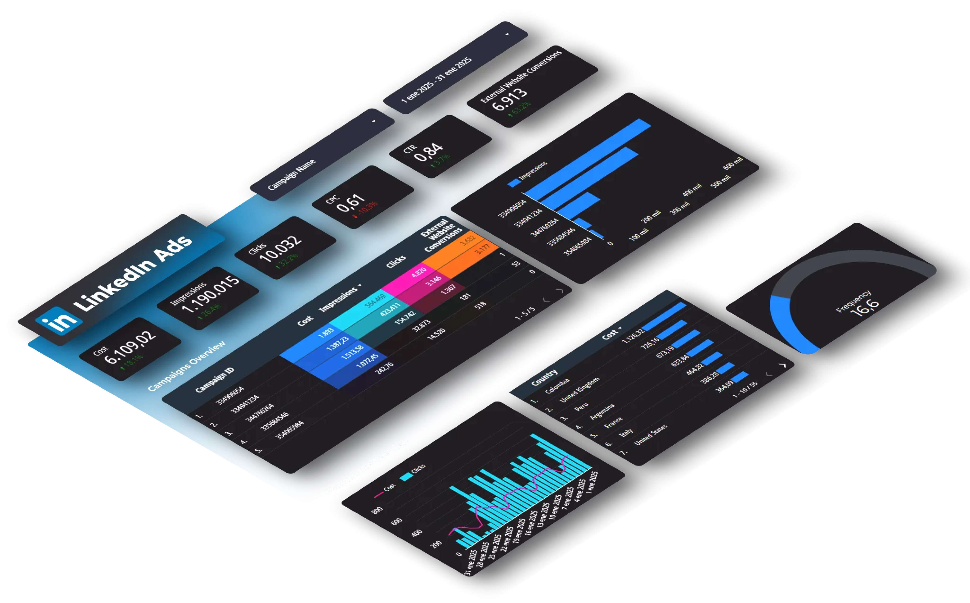 For example, consolidating Google Ads, Facebook Ads, LinkedIn Ads, TikTok, and GA4 data into a single dashboard without manual exports. These tools handle API authentication, data refresh scheduling, and format normalization.