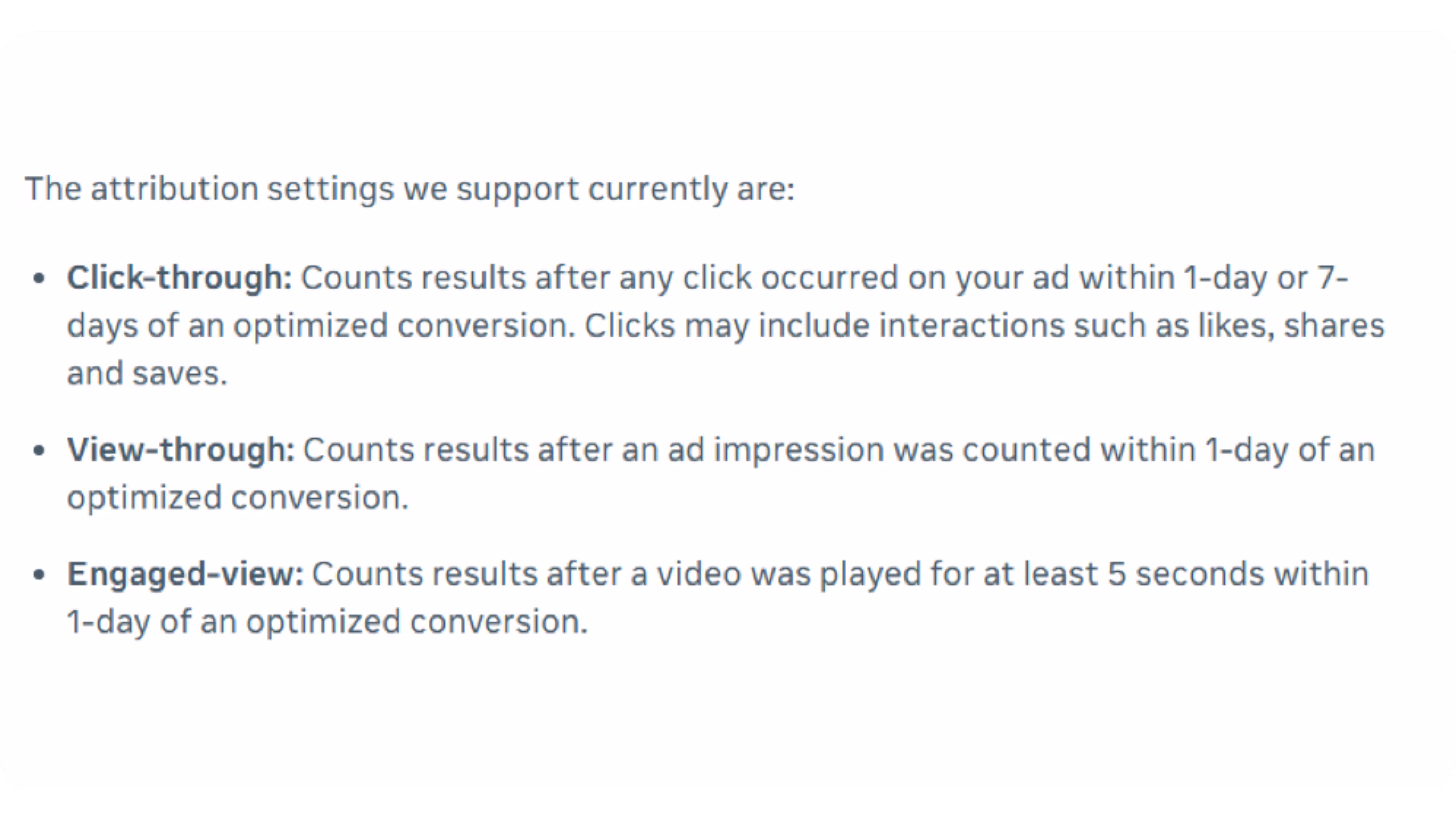 "Counts results after any click occurred on your ad within 1-day or 7-days of an optimized conversion. Clicks may include interactions such as likes, shares and saves."