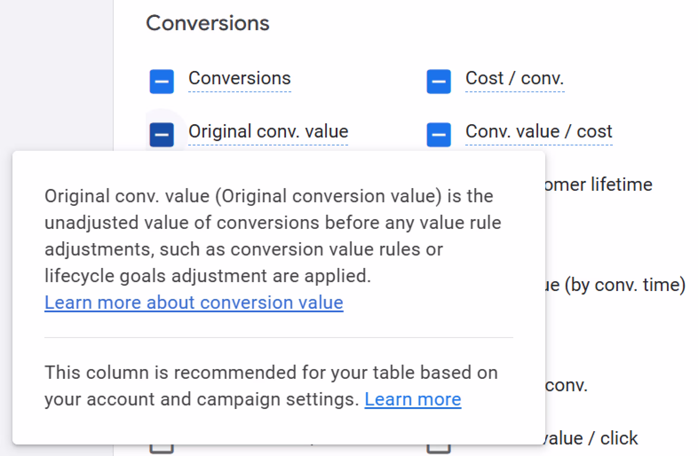 El Valor de conversión original La métrica elimina los multiplicadores de las reglas de valor, las bonificaciones por adquisición de nuevos clientes y los ajustes de los objetivos del ciclo de vida para mostrar los ingresos brutos que generaron sus campañas. Descubierto por Thomas Eccel, especialista en Google Ads, no se anunció, solo apareció en las cuentas.