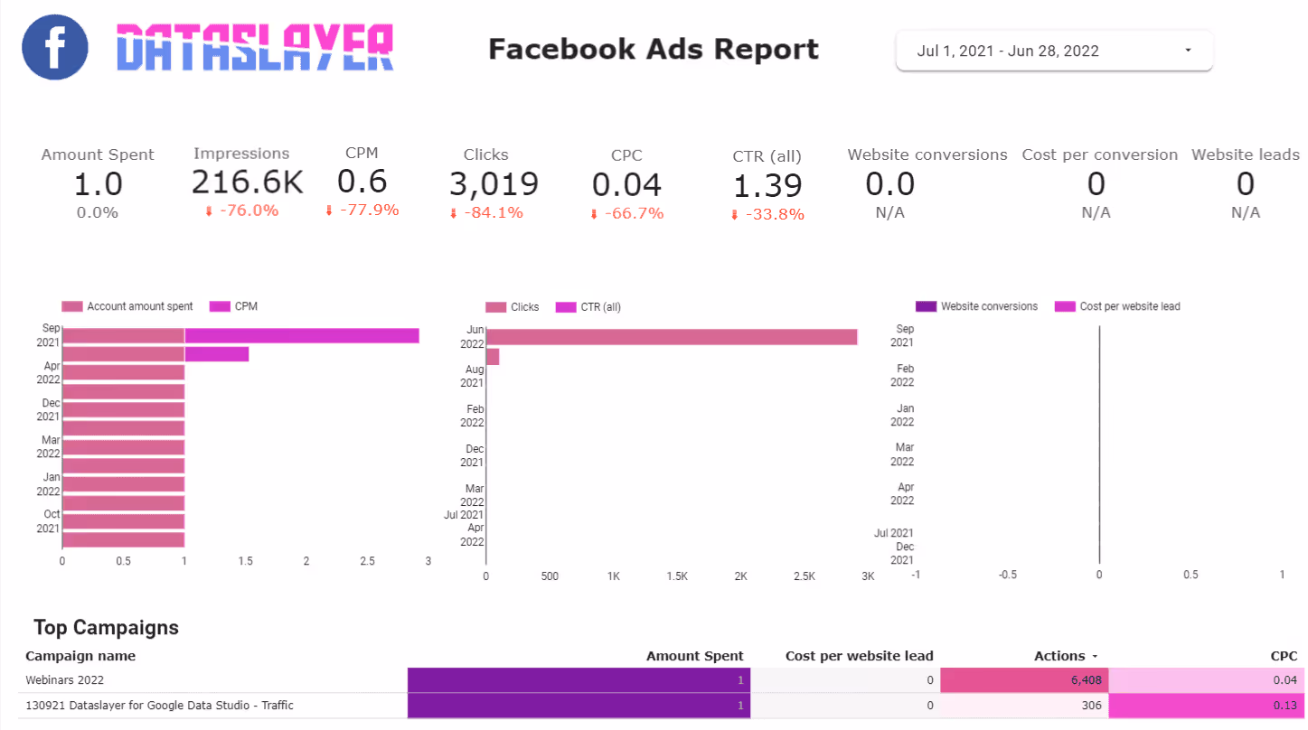 A continuación encontrarás algunas plantillas, simplemente haz clic en ellas y obtendrás un panel de Google Looker Studio con los datos de tu campaña en cuestión de segundos.
