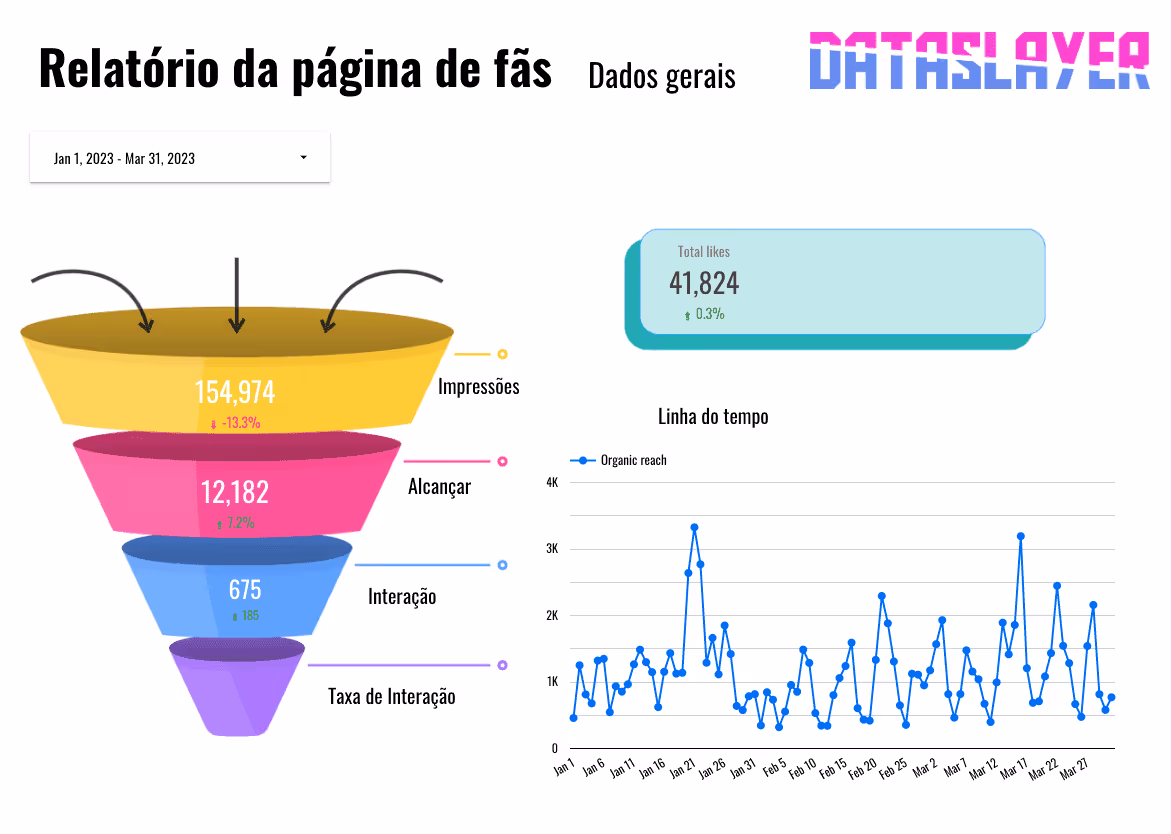 Este panel proporciona datos detallados sobre el rendimiento de una página de fans y la participación en las páginas. ¡En modo oscuro! Idioma: Portuguese (puedes cambiarlo). Fuente de datos: [...]